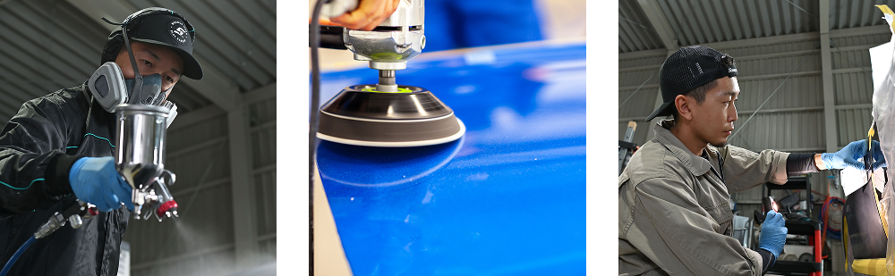 外装のへこみや傷の補修はもちろん、フレームの歪みやエンジン、サスペンションなどの内部のダメージも細かくチェックし、必要な修理・交換を行います。